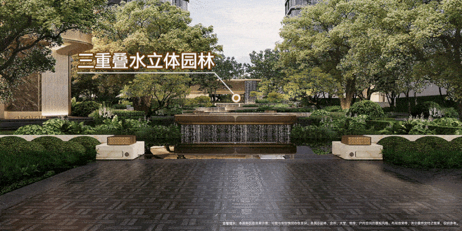 :以传统轴对称制式打造约 330 米园林通廊,设下沉庭院、前庭水景、艺术雕塑等景观节点,融合鎏金美学与岭南元素,搭配罗汉松、弧形贝金米黄大理石等高端材质,营造兼具观赏性与实用性的社区园林,提升居住舒适度。